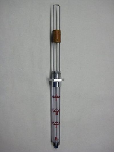 In studying the original Boeing prints, we discovered that there are two different fuel gauge models. The early style has a silver soldered joint in the cork guide wire and the later style is made of one piece. The later gauge also has a metal band at the end of the sight tube to stop the tube from splitting when the plug is screwed in. We decided that the new FAA-PMA gauge should incorporate all of the later improvements in the new design. The cork is also held in place mechanically, using an Aluminum washer crimped to the indicator wire. All of the original steel parts are manufactured with stainless steel.